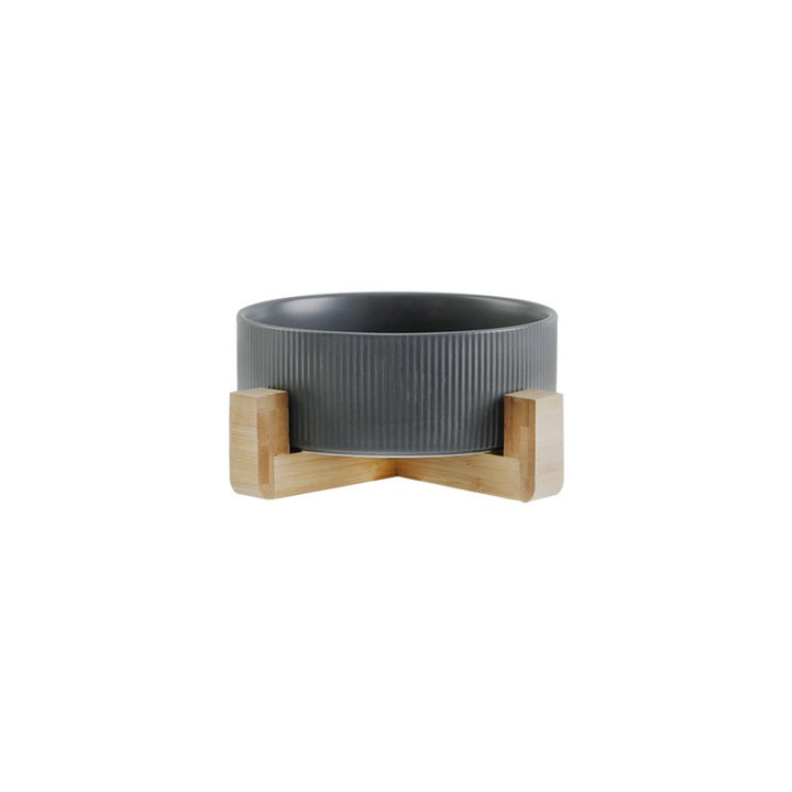 Bjaf keramisk skål kombinerer stil og funktionalitet med sit elegante, riplede design og medfølgende træholder. Skålen løftes fra gulvet for en ergonomisk spisehøjde, hvilket giver din hund eller kat en mere behagelig spiseoplevelse. Den tidløse æstetik passer perfekt ind i ethvert hjem.
