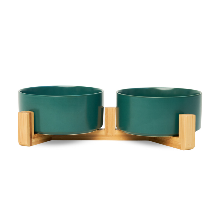 Vores elegante Bjaf keramiske skål med træholder kombinerer stil og funktionalitet, hvilket giver din hund eller kat en mere ergonomisk spiseoplevelse. Skålen er lavet af holdbart, nemt rengørligt keramik og udsmykket med sofistikerede detaljer. Træholderen løfter skålene, reducerer belastningen på led og ryg, og tilføjer et tidløst design til dit hjem. Skålsættet indeholder både en mad- og vandskål.