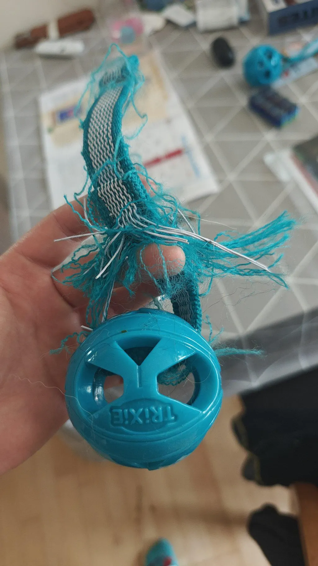 Trixie bikube-kuglen kombinerer holdbart design og høj funktionalitet, perfekt til aktiv leg. Det gummibelagte TPE beskytter hundens tænder, mens det smarte reb og boldens form sikrer både kaste- og trækkeleg uden gener.